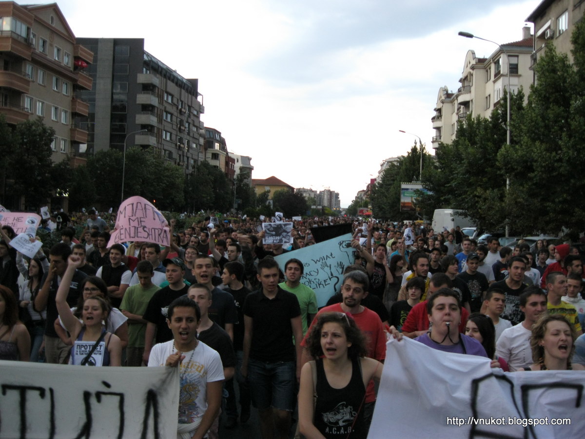 Jovens macedônios e alguns intelectuais mais velhos têm protestado por cinco dias pela internet e fora dela em Skopje, exigindo que as autoridades resolvam o caso do assassinato de um jovem por um policial que servia de guarda-costas para um oficial de alto escalão durante as passeatas pós-eleições [en] do partido de situação. Na sexta-feira, jovens de outras cidades, como Bitola, Strumica, e Kochani, tomaram as ruas também.