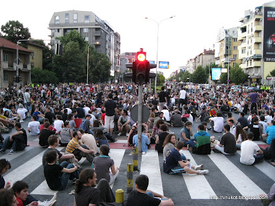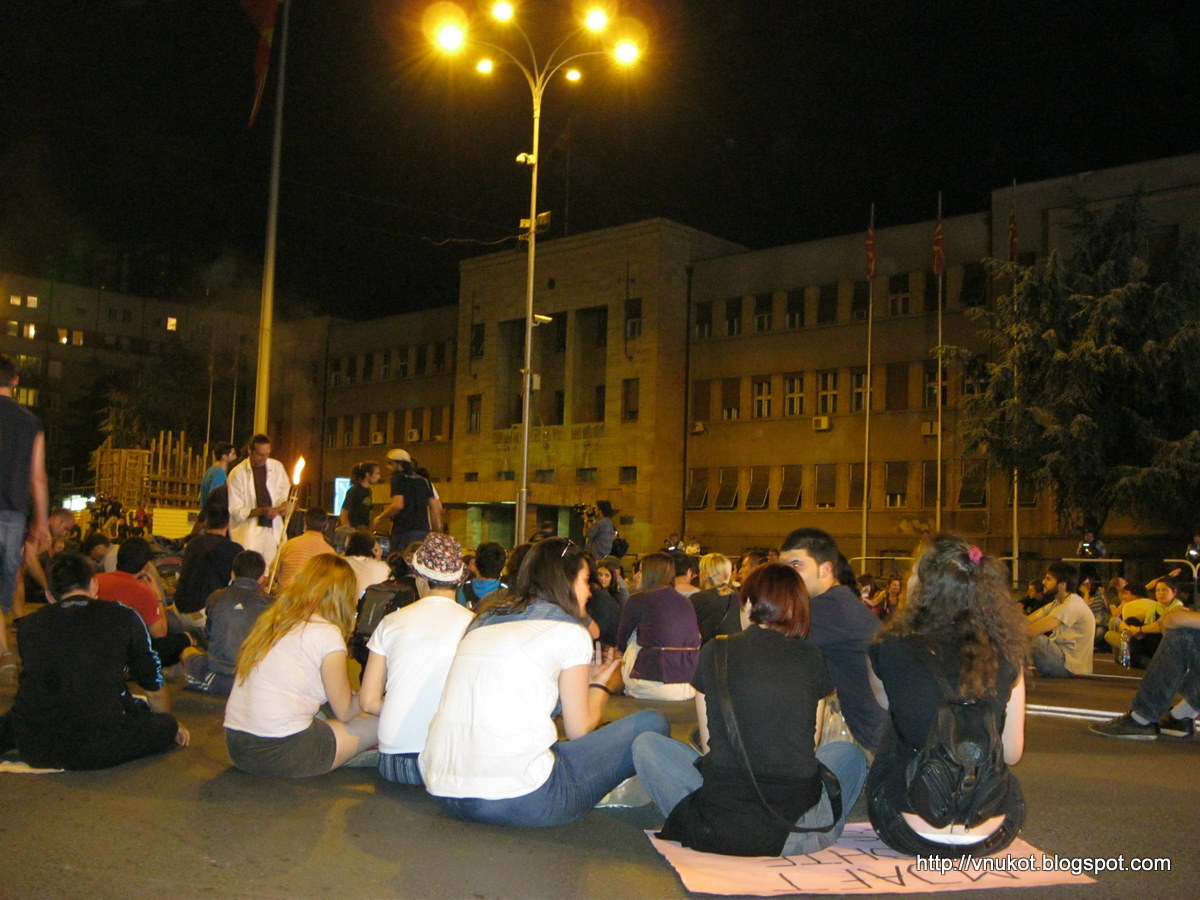 On day 5 of the protests, not only did other cities in Macedonia rise to the occasion, but the young people of Skopje started to escape the apathy, slowly but surely.[“No dia 5 de protestos, não somente outras cidades da Macedônia se levantaram para a ocasião, mas também os jovens de Skopje começaram a sair da apatia, vagarosamente, mas certamente.”]